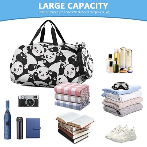 Travel Duffle Bag for Kids Boys Girls Panda Little Animal Print Sports Bag Overnighter Duffle Sleepover Weekender with Shoes Compartment 6