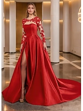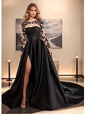 More information about Black Evening Gown Ball Gown Cape Dress Detachable Cape Evening Gown Elegant Dress Formal Wedding Chapel Train Sleeveless Long Sleeve Floral Lace with Slit