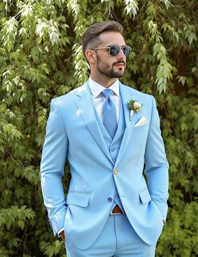 • Gifts Choose:Unique, comfortable, and grand, it is the best gift for your father, son, friends, and more for this slim fit Beige Mens Wedding Groomsmen Prom Formal Business Dinner Party Elegant 3 Piece Blazer Jacket Vest Pants Tuxedo Suits.