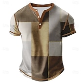 Men's Color Block Henley Shirt Tee Short Sleeve Vintage Fashion Designer Outdoor Casual Daily Spring &  Fall All Seasons Gray Blue khaki Henley Henley T-Shirt 1
