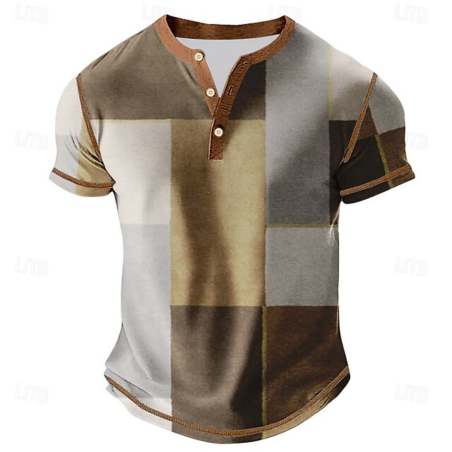 Men's Color Block Henley Shirt Tee Short Sleeve Vintage Fashion Designer Outdoor Casual Daily Spring &  Fall All Seasons Gray Blue khaki Henley Henley T-Shirt 6