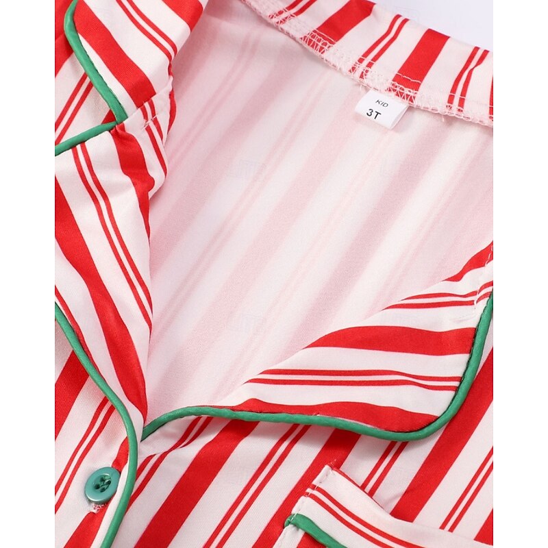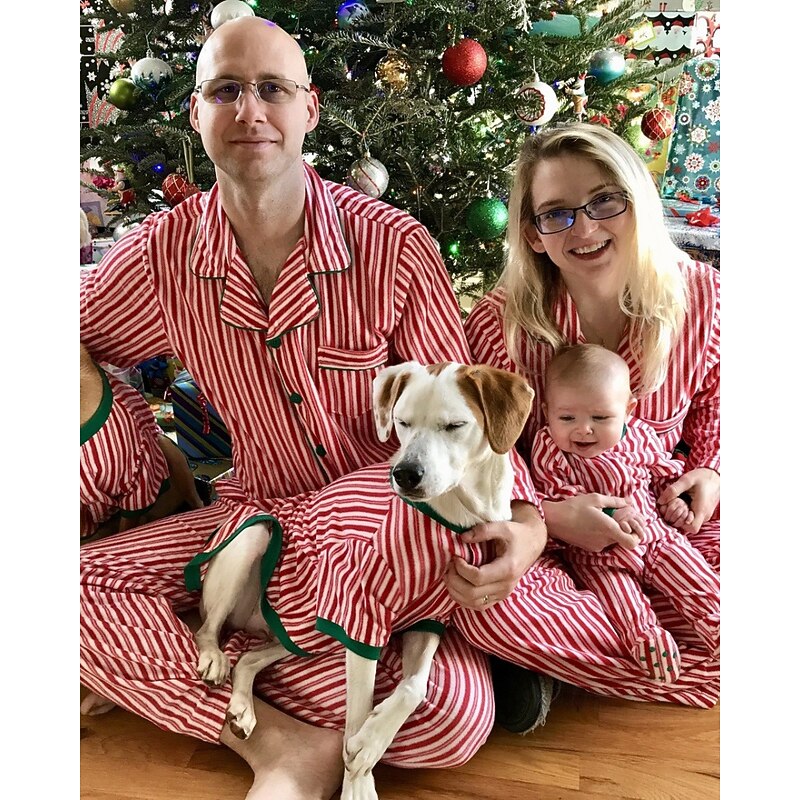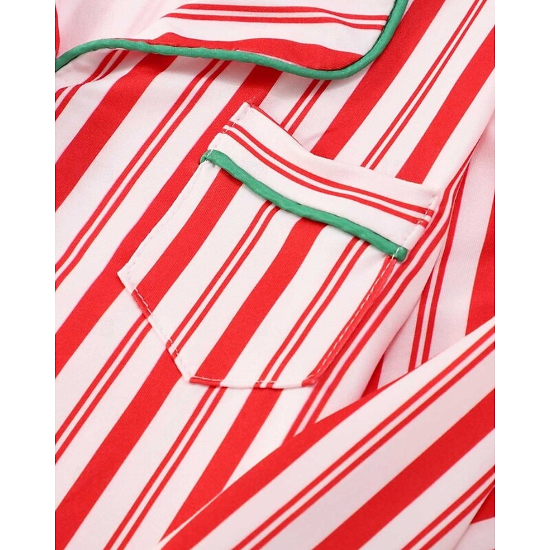 Family Pajamas Striped Street Print Red Long Sleeve Sweet Matching Outfits 12