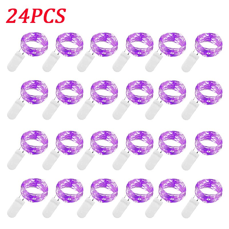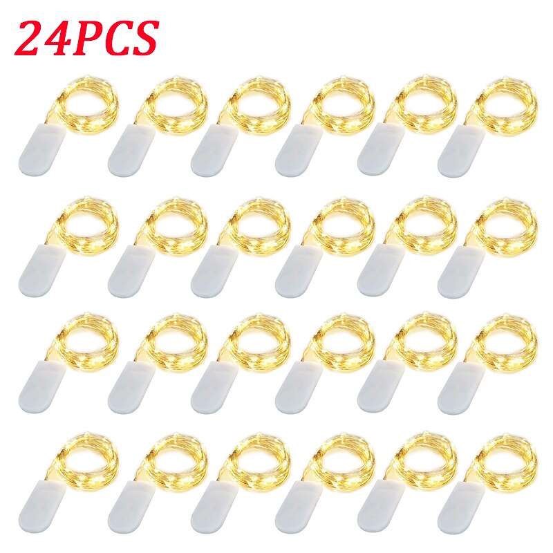 Elegant Wedding Reception Party 24pcs 1M 10Leds LED String Fairy Lights Garland Decorative Light Outdoor String Lights Copper Wire CR2032 Battery Operated Christmas Wedding Party Decoration 24