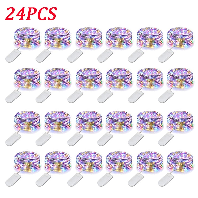 Elegant Wedding Reception Party 24pcs 1M 10Leds LED String Fairy Lights Garland Decorative Light Outdoor String Lights Copper Wire CR2032 Battery Operated Christmas Wedding Party Decoration 12