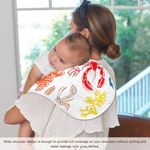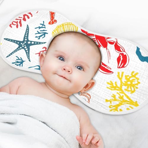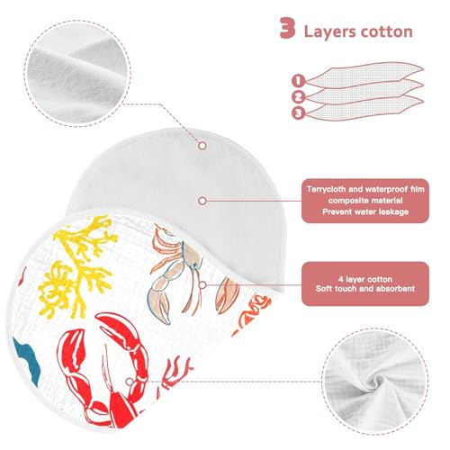 4 Pack Baby Burp Cloths, Soft Absorbent Burping Cloths for Babies, Cotton Milk Spit Up Rags, Large Size for Newborns, Baby Boys and Girls (Sketch Lobster Pattern) 6