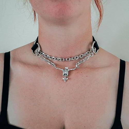 Gothic Skeleton Skull Choker Necklace Punk Captivity Skull Pendent Necklace Goth Grunge Emo Necklace Halloween Costume Accessories for Men Women 1
