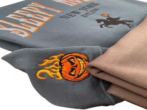 Sleepy Hollow Embroidered Sweatshirt – Headless Horseman Halloween Crewneck, Pumpkin Flame Sleeve Embroidery, Cozy Fall Spooky Season Sweater Gift for Her & Him Multi 5