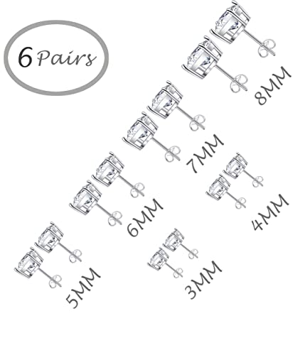 • 6-PAIR SET—One Set Includes 6 Pairs, Each Pair in 3mm/4mm/5mm/6mm/7mm/8mm, CZ From Tiny to Big, Meeting Your Needs of Multiple Sizes, Try Different Size Every Day