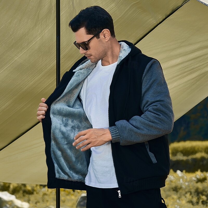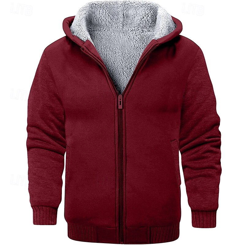 More information about Men's Hoodie Full Zip Hoodie Fleece Hoodie Fleece lined Hoodie Wine Red Black Red Navy Blue Light Grey Hooded Plain Sports & Outdoor Daily Holiday Polyester Streetwear Cool Casual Winter Spring