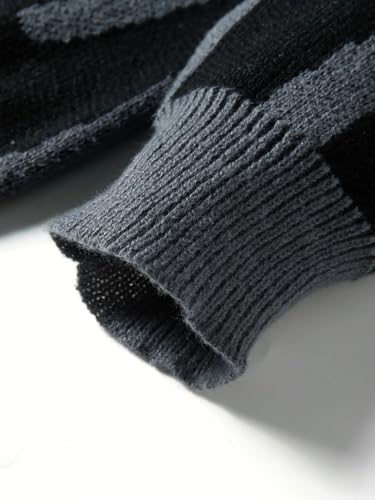 Men's Printed Knit Pullover - Winter Irregular Pattern Sweater, Contrast Crew Neck Casual Top 5