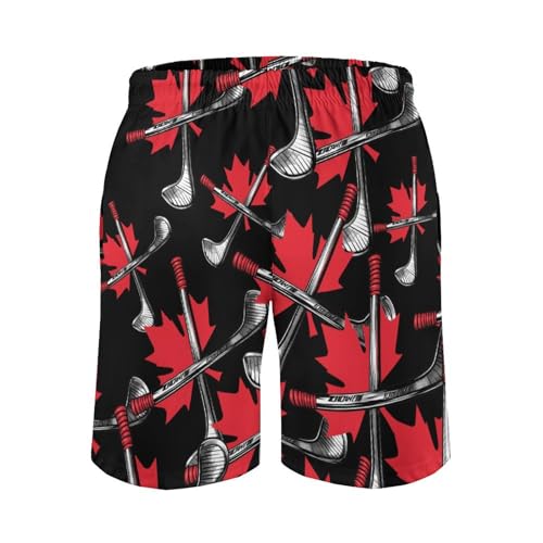 Canada Ice Hockey Maple Men's Swim Trunks Quick Dry Board Shorts Hawaiian Beach Shorts With Pocket 1