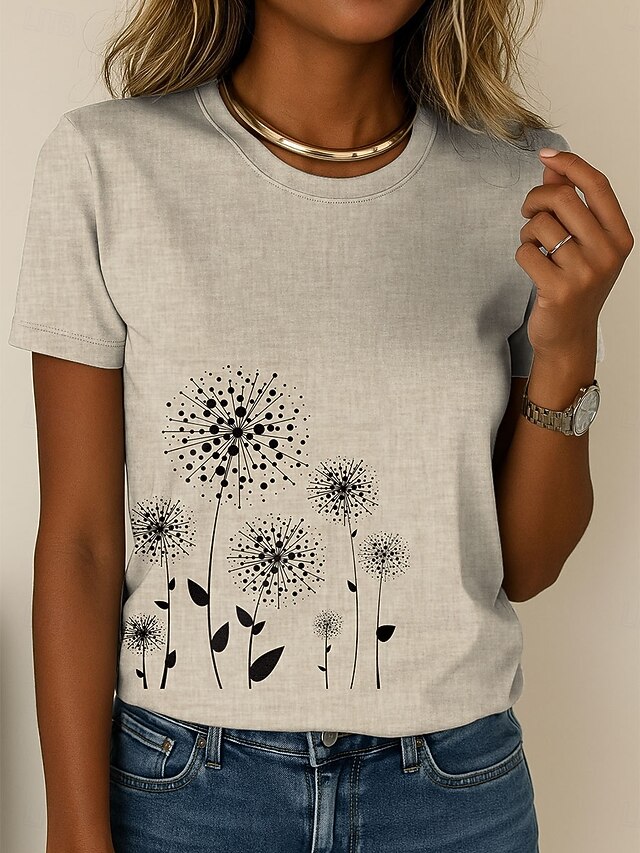 More information about Women's T Shirt Floral Graphic Plants Casual Short Sleeve Round Neck Regular Tops Daily Going out Weekend Print Blue Purple Green Khaki Summer