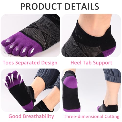 Womens Toe Socks Cotton Athletic Running Socks No Show Five Finger Sports Arch Support Ankle Socks 6 Pack 5