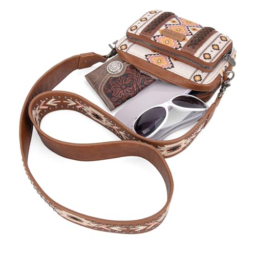HOT ! Wrangler Crossbody Bag for Women Boho Aztec Small Multi Pocket Crossover Purse