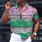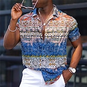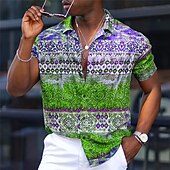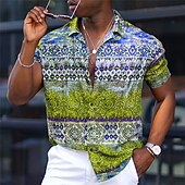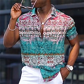 More information about Men's Floral Tribal Vintage Shirt Button Up Shirt Vintage Hawaiian Shirts Short Sleeve Sports Fashion Streetwear Outdoor Casual Holiday Summer Spring Cuban Collar Print Lake blue Yellow Light Green