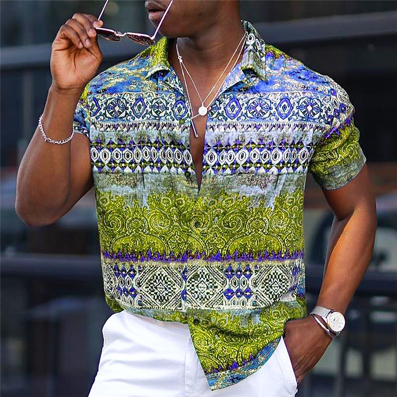 Men's Floral Tribal Vintage Shirt Button Up Shirt Vintage Hawaiian Shirts Short Sleeve Sports Fashion Streetwear Outdoor Casual Holiday Summer Spring Cuban Collar Print Lake blue Yellow Light Green