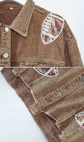 yoeasy Women's Corduroy Rugby Sequin Crop Jacket Raw Hem Vintage Football Distressed Short Jacket Coat With Pockets 5