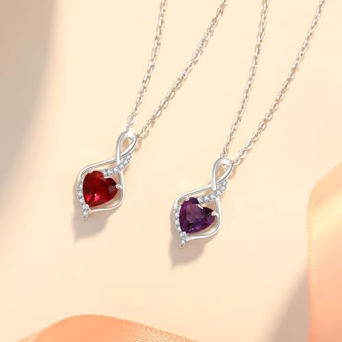 HOT ! FANCIME 14K Solid White Gold Infinity Heart Birthstone Necklace for Women with Diamond Pendant Birthday Gifts for Mom Women Sterling Silver Chain 16" + 2" Extender