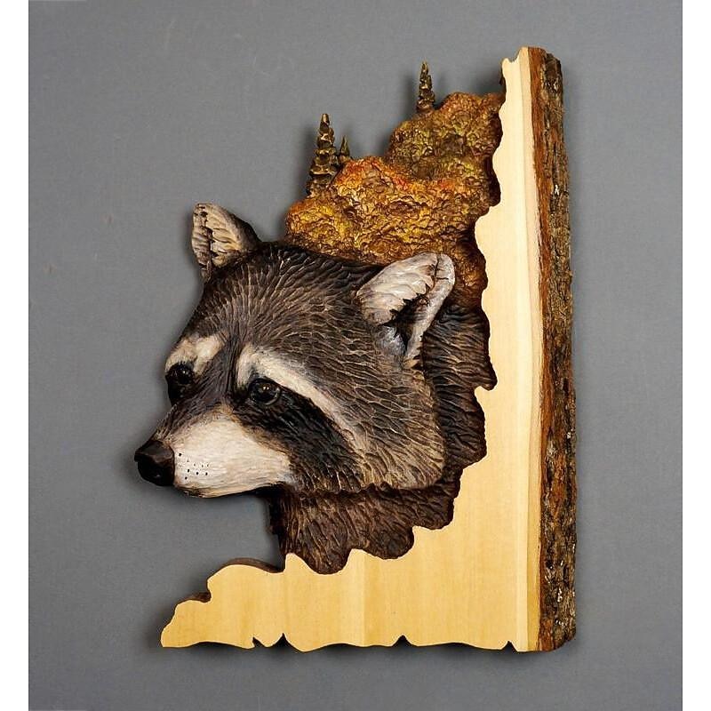 More information about 1pc Animal Carving Handcraft Wall Hanging Sculpture, Wood Raccoon Bear Deer Hand Painted Decoration, For Home Living Room