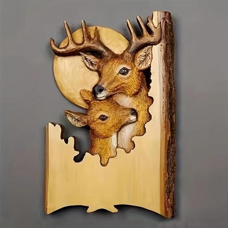 1pc Animal Carving Handcraft Wall Hanging Sculpture, Wood Raccoon Bear Deer Hand Painted Decoration, For Home Living Room 27