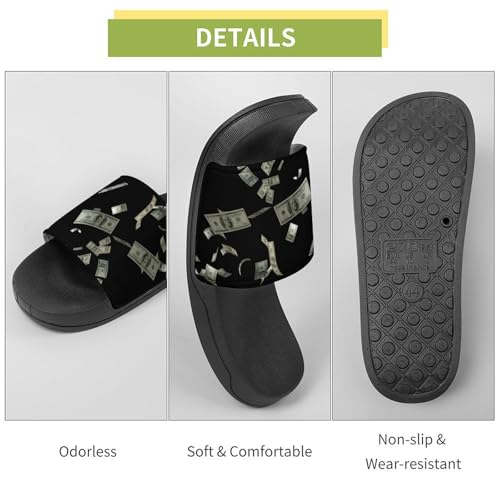 More information about 100 Dollar Bills Flying in The Air PVC Slippers Sandals for Women Men Open Toe Soft Cushioned Non-Slip Sandal for Indoor Outdoor