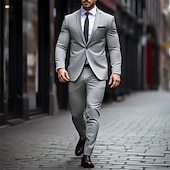 More information about Men's Blazer Set Suits Business Cocktail Party Wedding Party Fashion Casual Spring & Fall 65% Cotton Plain Pocket 2 Piece Comfortable Single Breasted Blazer Gray