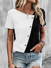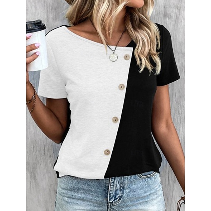 $21.99 - Women's T Shirt Casual Short Sleeve Asymmetric Neck Regular Tops Daily Buttons Black and White Black and gray Summer 2025. Shop for cheap Plain tee online? Buy at lightinthebox.com on sale today!