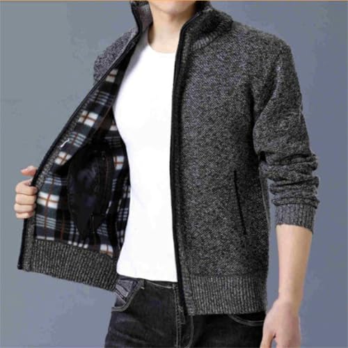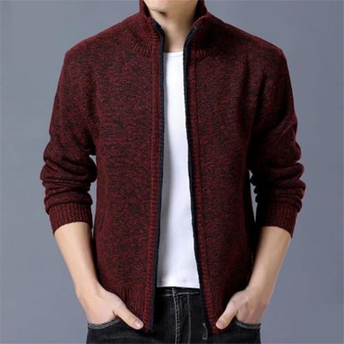 Men Stand Collar Thick Cardigan Sweater Autumn Winter Loose Zipper Knitted Top 5