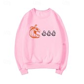Women's Pullover Sweatshirt Sweatshirts Pumpkin Streetwear Casual Long Sleeve Crew Neck Regular Tops Street Holiday Going out Print Black Pink Blue Khaki Gray Fall Winter 11