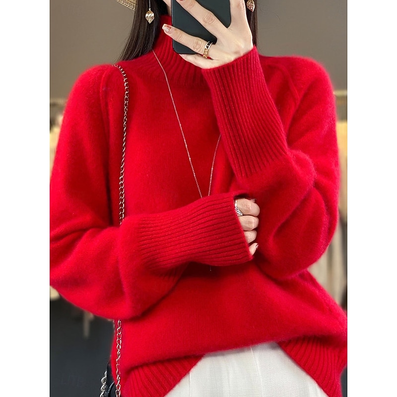 More information about Women's Sweater Pullover Sweater Jumper Casual Soft Pure Color Ribbed Crew Neck Knitted Long Sleeve Regular Tops Knit Outdoor Daily Weekend White Red Fall Winter