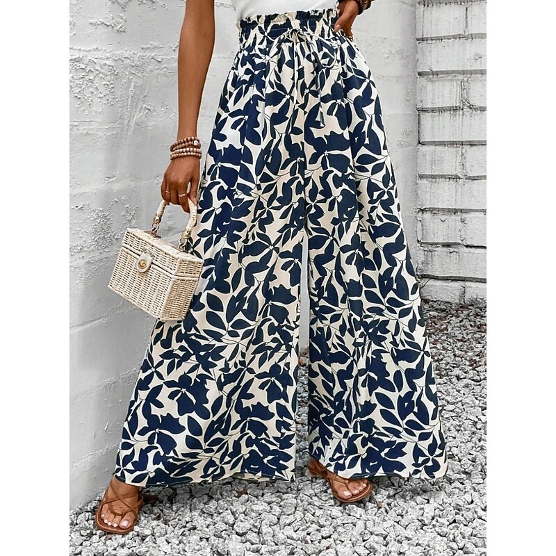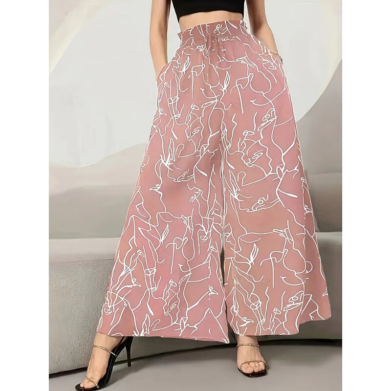 More information about Women's Wide Leg Chinos Fashion Streetwear Casual Full Length High Waist Floral Elastic Waistband Printing Comfy Soft Comfortable Micro-elastic Outdoor Street Black Pink Blue Green Summer Spring Fall