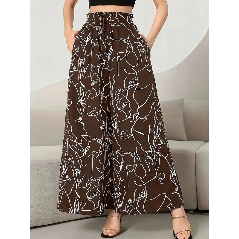 HOT ! Women's Wide Leg Chinos Fashion Streetwear Casual Full Length High Waist Floral Elastic Waistband Printing Comfy Soft Comfortable Micro-elastic Outdoor Street Black Pink Blue Green Summer Spring Fall