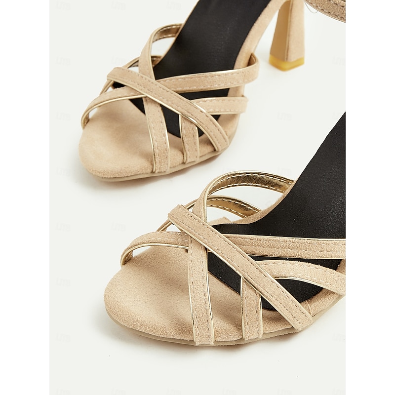 HOT ! Women's Nude Suede Strappy Heels – 1950s Elegant Ankle Strap Open Toe Sandals for Wedding, Party & Summer Dressy Occasions
