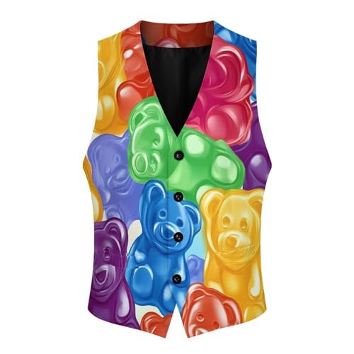 Colorful Gummy Bears Candy Mens Suit Vests V-Neck Casual Vest Dress Formal Tuxedo Wedding Waistcoat 6