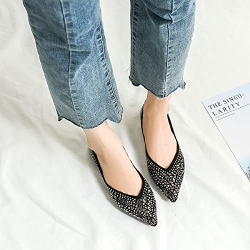 Hee grand Women's Slip On Ballet Flats Fashion Rhinestone Pointed Toe Shallow Flat Shoes Wedding Shoes for Party Wedding Shoes for Party 7