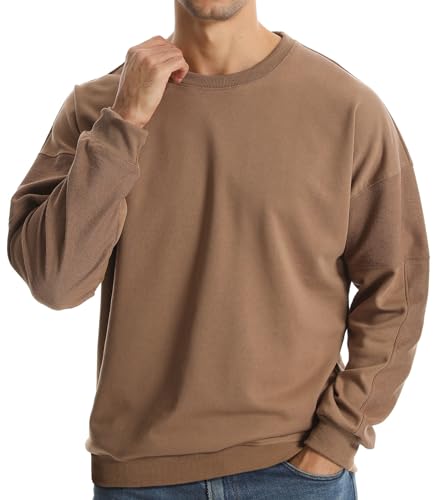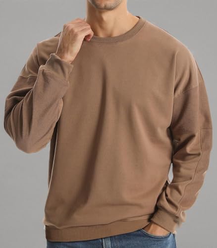 Suwangi Men's Crewneck Sweatshirts Patchwork Athletic Workout Sweat Shirt Casual Loose fit Long Sleeve Pullover Tops for Men 5