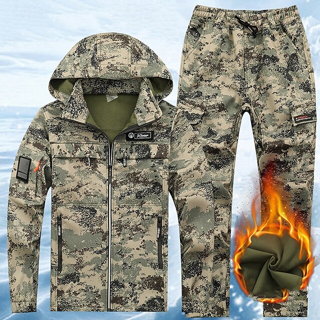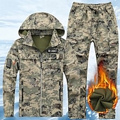 More information about Men's Hiking Jacket Fleece Jacket Puffer Jacket Thermal Set Winter Outdoor Camo Thermal Warm Waterproof Windproof Top Black Green Khaki