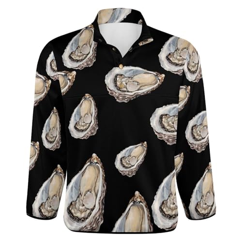 HOT ! Seafood Oyster Long Sleeve Shirt Casual Stand-Collar Sweatshirts for Men 1/4 Button Up Pullover Polo Sweaters