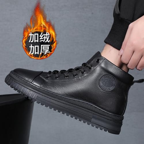 MOYOWEI Men's Black High-top Casual Leather Boots,Fall/Winter Round Toe Non-slip Side Zip Travel Height Sneakers Ankle Booties