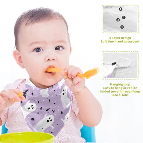 HOT ! vvfelixl Ghosts and Bat Baby Burp Cloths Baby Muslin Washcloths for Boys Girls Cotton Babys Face Towel for Newborn Infants Soft and Absorbent 11.8 X 11.8 in, 5 Pack