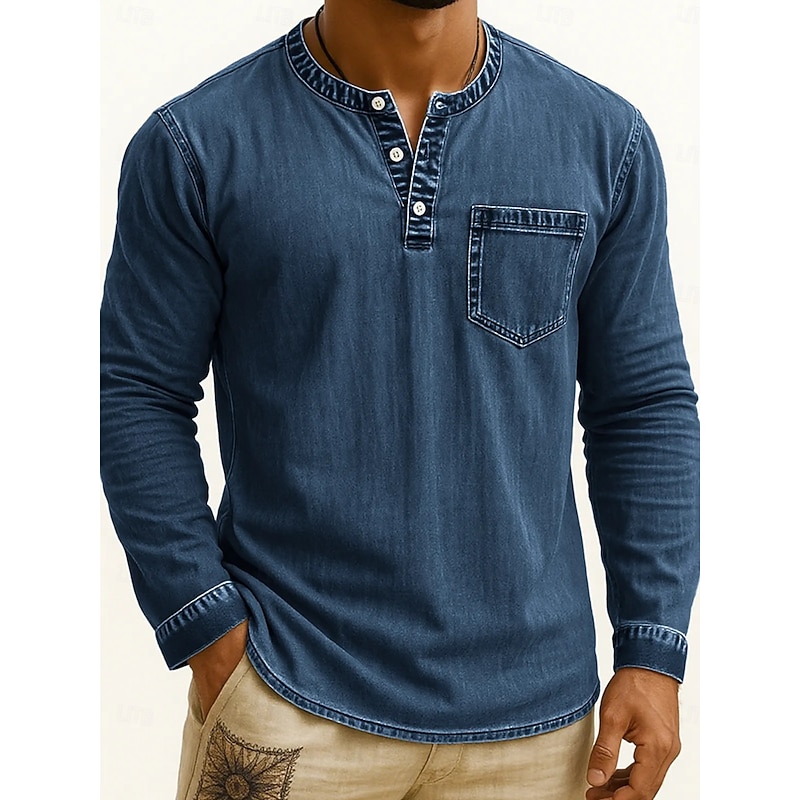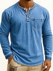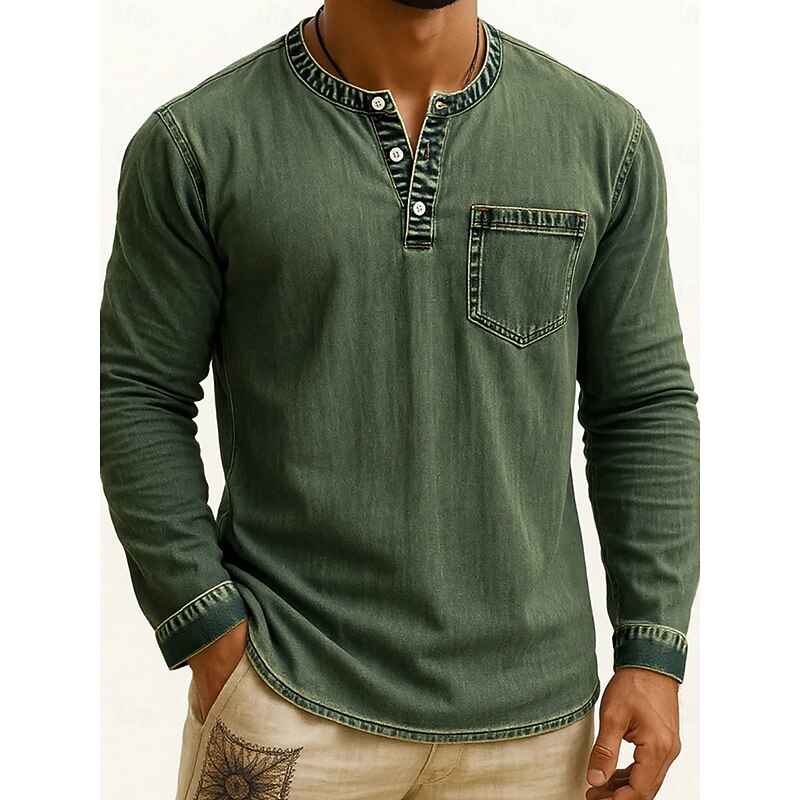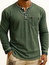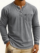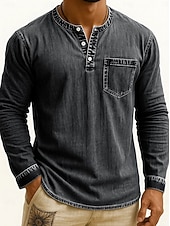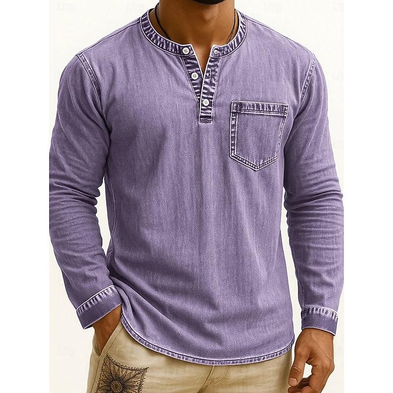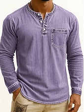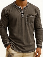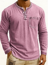 More information about Men's Henley Shirt Tee Vintage Shirt Long Sleeve Solid Color Plain Solid Vintage Fashion Retro Buttons Henley Outdoor Casual Daily Summer Spring All Seasons Black Pink Gray Henley T-Shirt
