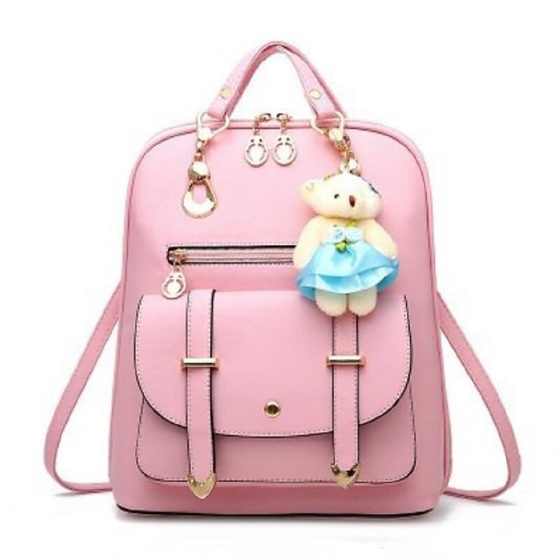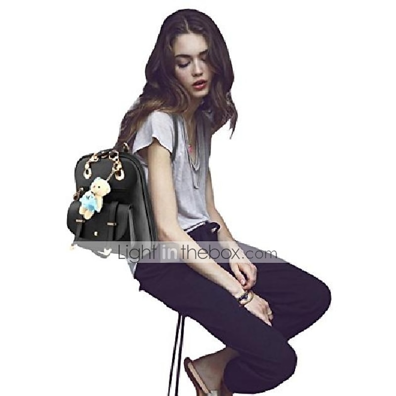 More information about Women's School Bag Bookbag Commuter Backpack Outdoor Daily Traveling Solid Color PU Leather Large Capacity Buttons Zipper Light Blue Light Gray Wine