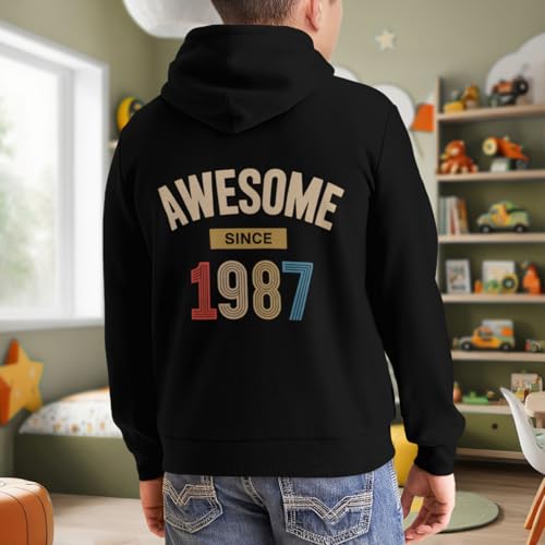 Kids Awesome Since 1987 Birthdy Gifts Boys Girls Lightweight Kangaroo Pocket Fleece Hoodies 3