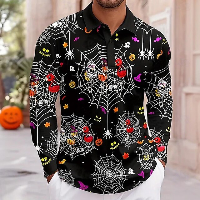$21.99 - Halloween Men's Pumpkin Ghost Polo Long Sleeve Polo Shirts Lapel Casual Dark Street Daily Wear Festival Outfit 3D Print Buttons Spring Fall Winter Black 2025. Shop for cheap Halloween Polos online? Buy at lightinthebox.com on sale today!