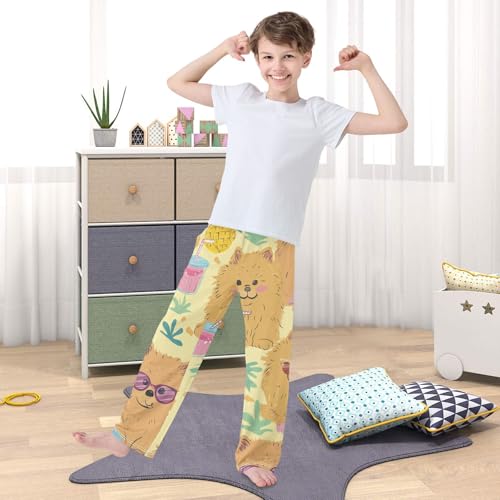 ZZXXB Pomeranian and Pineapple Boys Long Pants Soft Trousers Elastic Waist Kids Lounge Bottoms with Pockets S-XL 6