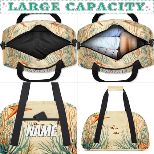 HOT ! Custom Vintage Beach Duffel Bag for Women Men, Personalized Coral Conch Beach Sport Gym Duffel Bag with Name Travel Weekender Overnight Bags