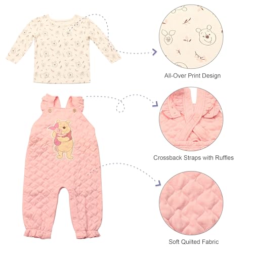 Magic Threadz Disney Clothes Baby Girls Overall Set – Long Sleeve Top & Romper with Minnie and Winnie the Pooh (0–24M) 2