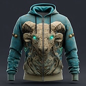 More information about Men's Animal 3D Hoodie Jacket Sweatshirt Fantasy All Over Print Zip Vacation Going out Streetwear Red Blue Zipper Fall Winter Designer