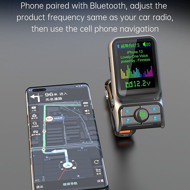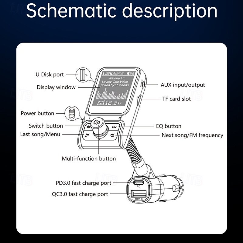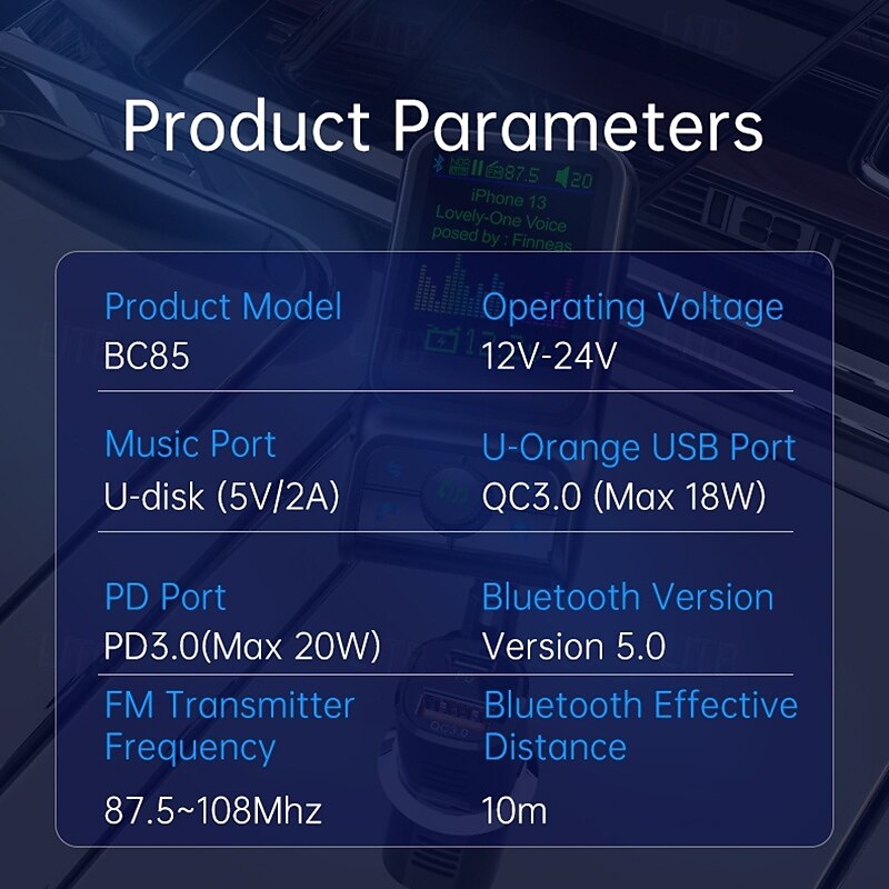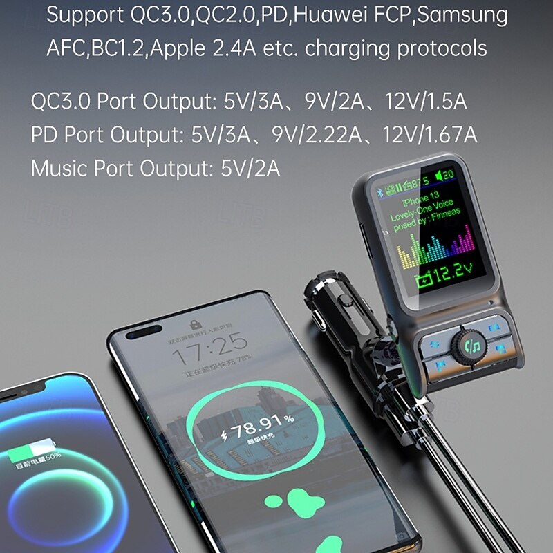 More information about Smart Bluetooth Car Charger PD3.0 QC3.0 EQ Sound FM Transmitter With AUX Colorful Display Windows Car Kit BC85