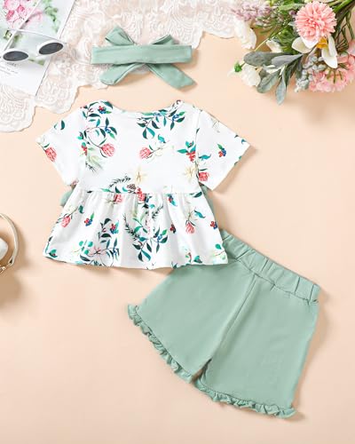YALLET Toddler Baby Girl Clothes Summer Outfits Set, Short Sleeve T-Shirt+Casual Shorts+Headband 3Pcs Infant Girl Clothing 4